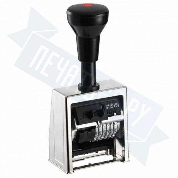 Нумератор автоматический в металлическом корпусе. Высота шрифта: 4,5 мм, Кол-во разрядов: 6, Размер оттиска: 23 мм, Материал корпуса: металл.
