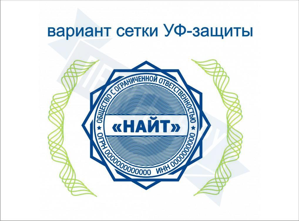 - Печати с невидимыми гильоширными метками, печать с защитой цербер по цене 3050 рублей и еще 7 видов